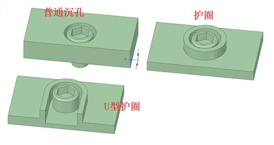 I类设备上的紧固螺栓,特别是隔爆外壳上从外侧装配的特殊紧固件,由于正常使用中易受机械损坏而使防爆型式失效。在标准中要求其头部具有护圈或沉孔保护,或通过结构内在保护。护圈的形状可为全封闭的圆环形或有开口的U形,通常,在螺栓拧紧后,螺栓头部不高于护圈或沉孔。